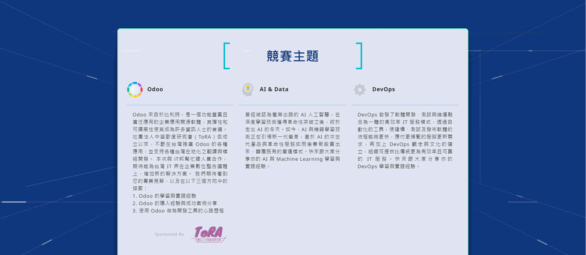 在會員們的協助下,協會在今年與 iThome 鐵人賽合作推出 Odoo競賽主題,