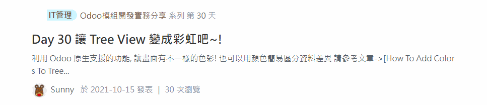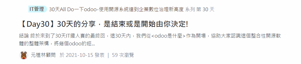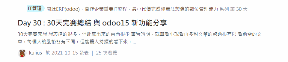 但總是有個起頭,odoo在iT邦幫忙才算露個臉,讓更多人認識。